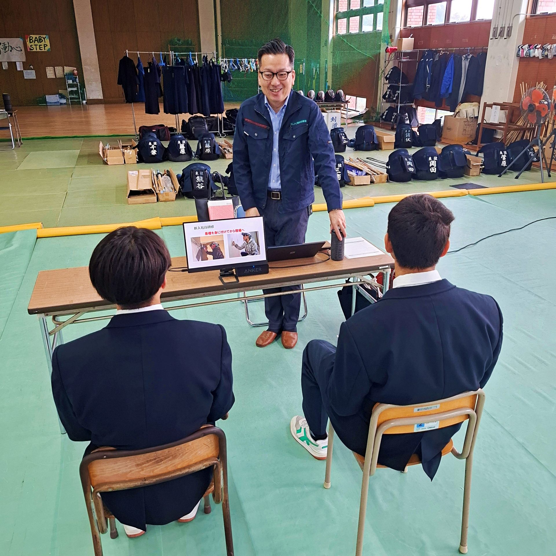 同校には2024年11月、2025年2月、そして今回と3回訪問してガイダンスを行っているのですが、最後にブースに来てくれた2人はなんと、その3回とも皆勤賞!(笑)毎回配布する当社のパンフレットも、3冊持っているのだとか!!! そして、校訓『明るく 元気に 誠実に』を体現する生徒たちの、足を止め正体して行う“あいさつ&お辞儀”は健在。この日の秋空のように、晴れ晴れとした気持ちになる、すばらしいあいさつでした。